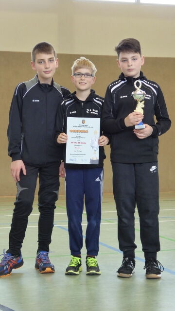 Die Bambini-Mannschaft des TV03-Wörth-Tischtennis, Janik Liebscher, Steven Hirsch und Elias Mozingo, wurde verdienter Bezirkspokalsieger der bis 11-jährigen Nachwuchstalente. Nach einem ungefährdeten 4:2 gegen den VFL Duttweiler im Halbfinale wurde auch der VFL Bellheim im Endspiel mit 4:3 bezwungen. Trotz anfänglichem 0:2 Rückstand kämpften die Wörther sich auf 3:3 heran und Janik Liebscher sicherte durch einen souveränen Sieg im entscheidenden letzten Spiel den Pokalerfolg. Janik war an diesem Tag der Garant des Erfolges, denn er gewann alle seine Spiele.